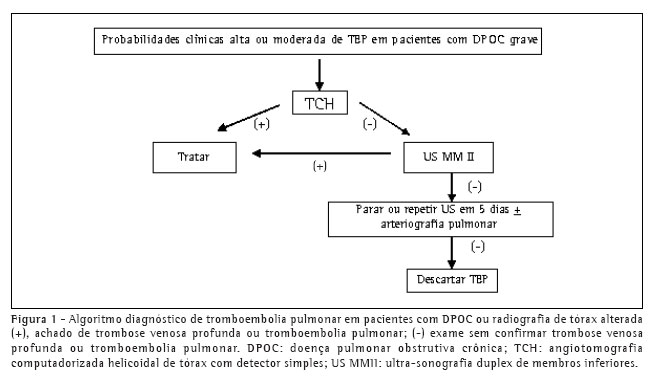 Finalmente, deve-se considerar que a tomografia computadorizada helicoidal com multidetectores permite a visualização de vasos subsegmentares. Em exames de alta qualidade pode excluir a TEP. O seu valor preditivo negativo tem sido estimado entre 98% e 99%.(53-54) Como a DPOC não interferiu no desempenho diagnóstico de TCH de detector simples,(44) o impacto específico para o grupo de pacientes com DPOC grave tem expectativa justificadamente favorável.