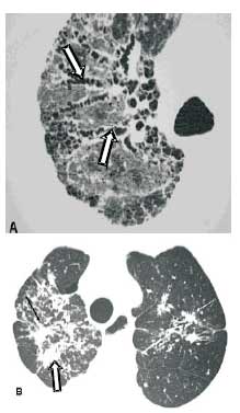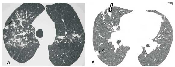 Nos casos em que predominam as manifestações atípicas, o conhecimento dos diferentes padrões tomográficos permite estreitar o diagnóstico diferencial, além de ajudar a selecionar o melhor local para uma eventual biópsia.