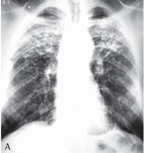Outros autores(22) estudaram a evolução radiológica de 141 pacientes silicóticos com radiografias seriadas e observaram que a progressão radiológica ocorreu mais nos portadores de grandes opacidades nas radiografias iniciais e nos que tiveram tuberculose.