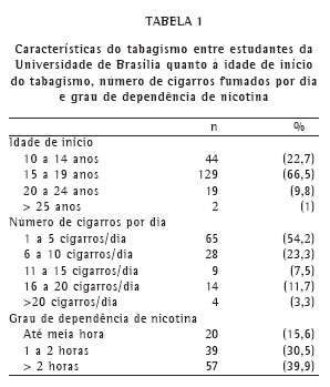 Prevalência e características do tabagismo em jovens da Universidade de Brasília