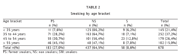The present study found more favorable numbers: 33% of the smokers and 37% of the former smokers hid their habit from their patients. This improvement in the behavior of physicians towards their patients may be explained by the higher level of consciousness acquired by the medical community over the past ten years, or even by the pressure that society has put on this community regarding their behavior in relation to the smoking habit.