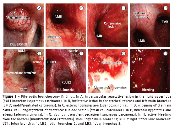 MethodsIn the present retrospective study, we analyzed the findings of 376 bronchoscopic procedures (all employing fiberoptic bronchoscopy) performed between January of 2005 and December of 2010 in patients who were clinically and radiologically suspected of having lung cancer, at the Respiratory Endoscopy Section of the Pulmonology Department of Hospital São Salvador, located in the city of Goiânia, Brazil.