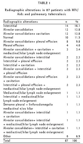 The difficulty in establishing a typical pattern for pulmonary TB in patients with HIV/AIDS is a challenge for physicians, who are confronted with the increasingly common problem of hard-to-control TB, which is inconsistent with the usual diagnostic findings. This random distribution of the radiologic alterations in these patients reinforces the idea that chest X-ray, as an isolated method, is inconclusive in the diagnosis of pulmonary TB in HIV-positive patients, as well as in ruling out this diagnostic possibility.