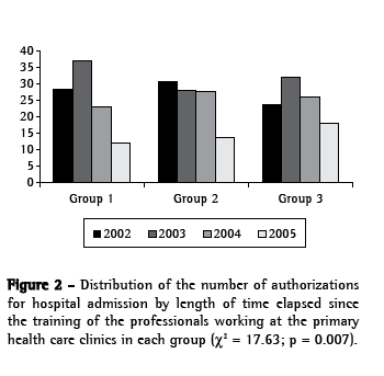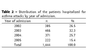 We observed that the number of hospital admissions in 2003 was greater than that found in the preceding year and in the two succeeding years (Table 2). This could result from the increase in the number of patients diagnosed with asthma after the training of the professionals working in primary health care.