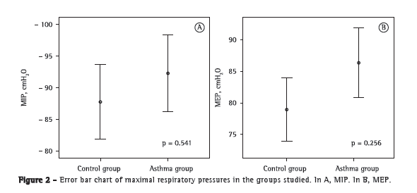 The results of the present study cannot be generalized to patients with severe asthma, because such patients were not included in the study protocol. We believe that there is a need for specific studies of patients with severe asthma, and we can infer that there are changes in respiratory muscle strength in this group of patients. However, a study protocol including a specific methodology should be developed to address this issue.