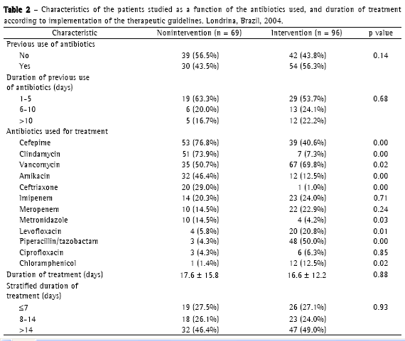 There was, in the present study, ample compliance with the protocol, since the routine in this sector is to monitor patients closely and to follow the CCIH protocols in all patients being treated with antibiotic therapy.