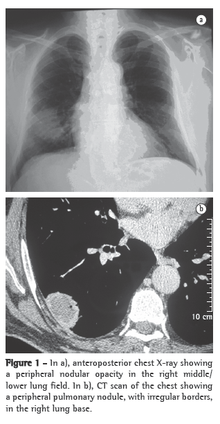 DiscussionIn the present case, the patient had a nonspecific clinical profile and a significant history of smoking. The presence of pulmonary signs and symptoms in an elderly former smoker raises the possibility of lung cancer, due to its high prevalence and to the fact that it is a common condition, when compared with systemic vasculitis. Therefore, in the initial approach to this patient, lung cancer could not be ruled out. In view of this, we requested complementary tests that, in combination with the clinical manifestations, allowed us to make the diagnosis and define the best treatment.
