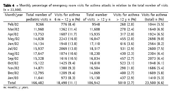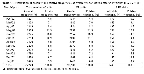 2002 to January 31, 2003. Methods: This was a cross-sectional study involving monthly analyses performed in order to evaluate the asthma