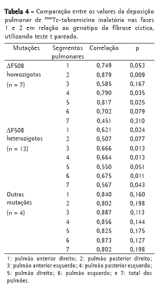 Os heterozigotos para mutação ΔF508 também apresentaram menor deposição da droga inalada em relação aos homozigotos e aos pacientes com outras mutações (Tabela 4).