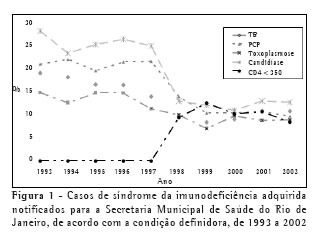 O emprego da terapia anti-retroviral (ARV) de alta potência está associado a uma diminuição na incidência da maioria das doenças oportunistas (DO).(1-2) No Brasil, a medicação ARV é fornecida gratuitamente para pacientes infectados pelo vírus da imunodeficiência humana (HIV) ou para aqueles com síndrome da imunodeficiência adquirida (AIDS), de acordo com critérios de tratamento preconizados pelo Ministério da Saúde e adotados em todo o território nacional.(3) Desde 1982, mais de 28.000 casos de AIDS foram notificados ao Sistema de Vigilância Epidemiológica do Município do Rio de Janeiro.(4) Desde 1992 disponibilizou-se a zidovudina para a rede pública e, a partir de 1994, outros inibidores da transcriptase reversa análogos de nucleosídeos também se tornaram disponíveis. No final de 1996, os medicamentos inibidores da protease foram adicionados ao arsenal de tratamento ARV, acarretando um importante impacto na expectativa de vida dos portadores de HIV/AIDS.(5-6) No início do ano de 2004 cerca de 22.000 indivíduos recebiam tratamento ARV em 54 serviços públicos de saúde na Cidade do Rio de Janeiro.