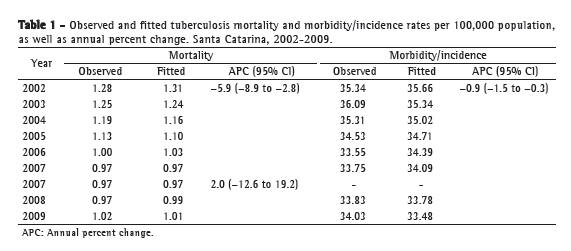 Tendência temporal da morbidade e mortalidade por tuberculose no estado de Santa Catarina, Brasil, no período entre 2002 e 2009