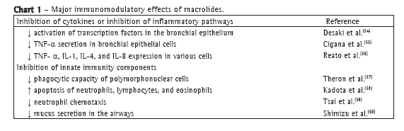 28. Rubin BK, Henke MO. Immunomodulatory activity and effectiveness of macrolides in chronic airway disease. Chest. 2004;125(2 Suppl):70S-78S. PMid:14872003. http://dx.doi.org/10.1378/chest.125.2_suppl.70S