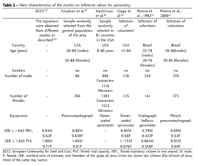 Various reference value equations have been published in recent decades.(14-16) The values expected for individuals presenting a given combination of