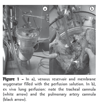 Our research protocol began in January of 2009, after having been approved by the Ethics Committee of the Hospital das Clínicas da Faculdade de Medicina da Universidade de São Paulo (HC-FMUSP, University of São Paulo School of Medicine Hospital das Clínicas) and after an extensive discussion with the HC-FMUSP Organização de Procura de Órgãos (OPO, Organ Procurement Organization), the Santa Casa de São Paulo Hospital OPO and the São Paulo State Department of Health Transplant Center. When a donor is reported, the transplant teams are informed. If the lungs are rejected for transplantation (usually due to poor blood gas analysis results), the research consent form is presented to the family members. If authorized, we collect the lungs in the usual manner, together with the other teams. Cold (4°C)Perfadex® (Vitrolife), infused through the pulmonary artery trunk (50 mL/kg), is used as a preservation solution, whereas cold (4°C) saline is poured over the lungs for topical cooling. After removal, the set formed by the two lungs is stored in a cooler and kept at 4°C for 10 h.