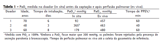 Nos três casos realizados até o momento, observamos uma melhora significativa da PaO2 (Tabela 1). O segundo caso já tinha uma PaO2 satisfatória, sendo rejeitado devido à pneumonia extensa.