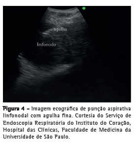 Novos equipamentos e tecnologias avançadas têm sido desenvolvidos com o objetivo de melhorar a eficácia dos métodos broncoscópicos no diagnóstico de patologias pulmonares e mediastinais. Nesse contexto, a navegação eletromagnética e endobronchial ultrasound-guide sheath, ou ecobroncoscopia radial, foram desenvolvidos para guiar biópsias de nódulos periféricos, enquanto o endobronchial ultrasound-guided transbronchial needle aspiration (EBUS-TBNA, punção aspirativa por agulha guiada por ultrassom endobrônquico) é utilizado na abordagem diagnóstica do mediastino e no estadiamento de neoplasia pulmonar. Dentre esses novos métodos, o EBUS-TBNA tem desempenhado um papel fundamental no diagnóstico de lesões mediastinais, paratraqueais ou peribrônquicas, assim como no estadiamento linfonodal de neoplasia pulmonar. Por se tratar de um exame endoscópico minimamente invasivo e cujo rendimento tem se mostrado comparável aos métodos cirúrgicos estabelecidos,(5) o EBUS-TBNA ganhou espaço rapidamente entre os novos métodos em broncoscopia e já se encontra integrada à rotina de investigação em serviços de referência. A experiência com a implantação da EBUS-TBNA em nosso meio trouxe à luz algumas dificuldades e particularidades que merecem discussão.