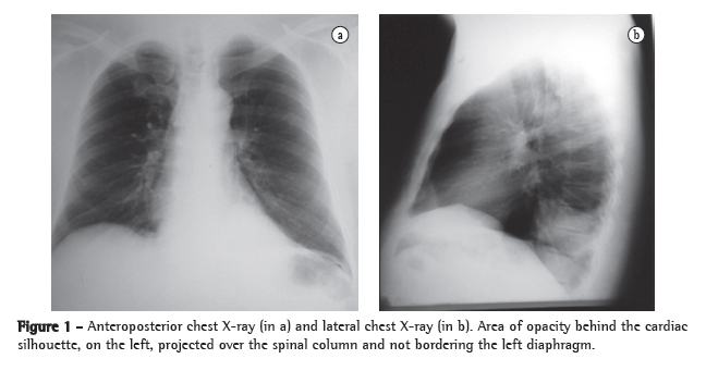 DiscussionWhen faced with a 56-year-old patient, admitted for investigation of hemoptysis, with no clinical evidence of respiratory infection, with no history of smoking and having an area of opacity in the posterior segment of the left lower lobe on chest X-ray, one of the hypotheses to be considered is that it is a case of pulmonary sequestration.