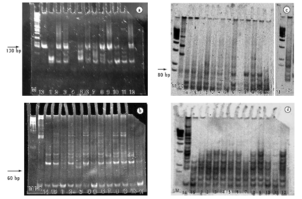 Aliquots of 30 µL were then analyzed by electrophoresis on a 10% polyacrylamide gel stained with ethidium bromide and photographed under ultraviolet light. Bands of relevant size were identified by comparison with a molecular weight marker (1 kb DNA ladder; Invitrogen Carlsbad, CA, USA).(10)