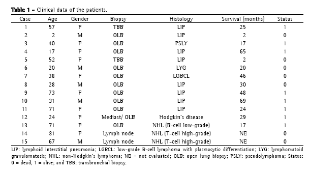 Palavras-chave: Linfoma; Doenças pulmonares intersticiais; Biologia molecular; Reação em cadeia da polimerase.