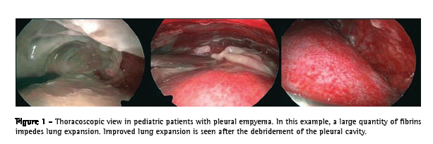 Most pediatric patients with empyema improve after antibiotic therapy and simple pleural drainage.(21) However, early, aggressive therapy, with the participation of the thoracic surgeon, principally using thoracoscopy, can result in shorter disease duration and a shorter hospital stay.