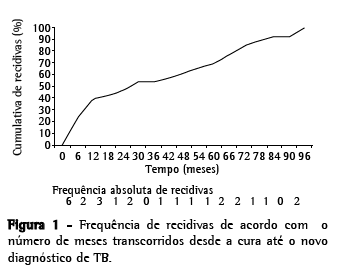 Vários fatores já foram identificados como associados à ocorrência de recidiva da TB, como, por exemplo, duração do tratamento, atividade bactericida/bacteriostática dos fármacos, modo de administração (diário ou intermitente) e irregularidade de seu uso. Com o surgimento da epidemia de infecção pelo HIV, alguns estudos têm mostrado taxas de recidiva mais elevadas em pacientes infectados (HIV-positivos),(2-8) enquanto que outros mostram valores semelhantes.(9-11)
