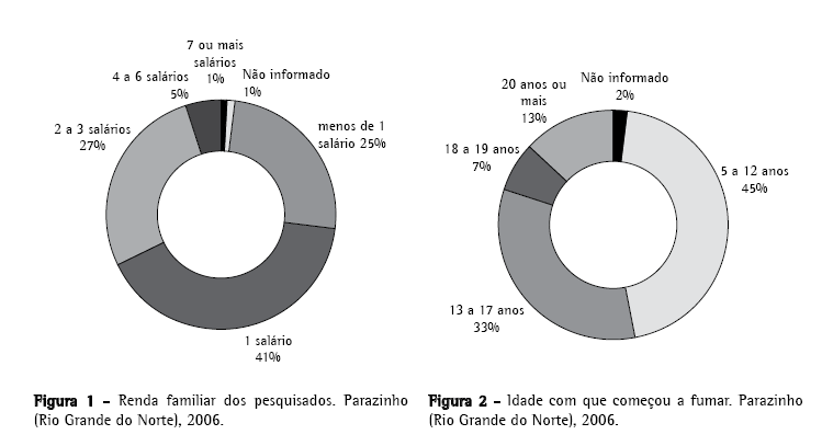 Quanto à forma de uso do tabaco, provavelmente, a baixa renda salarial dos entrevistados seja a explicação para a opção por cigarros não industrializados. A literatura aponta que seis cigarros artesanais chegam à equivalência de vinte cigarros industrializados, devido a sua maior toxicidade.(14)