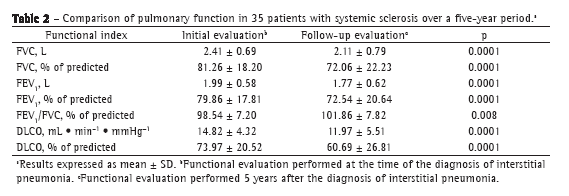 Pneumonia intersticial associada à esclerose sistêmica: avaliação da função pulmonar no período de cinco anos