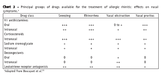 Chart 3 illustrates the effects that each of the principal groups of drugs available for the treatment of AR has on nasal symptoms.