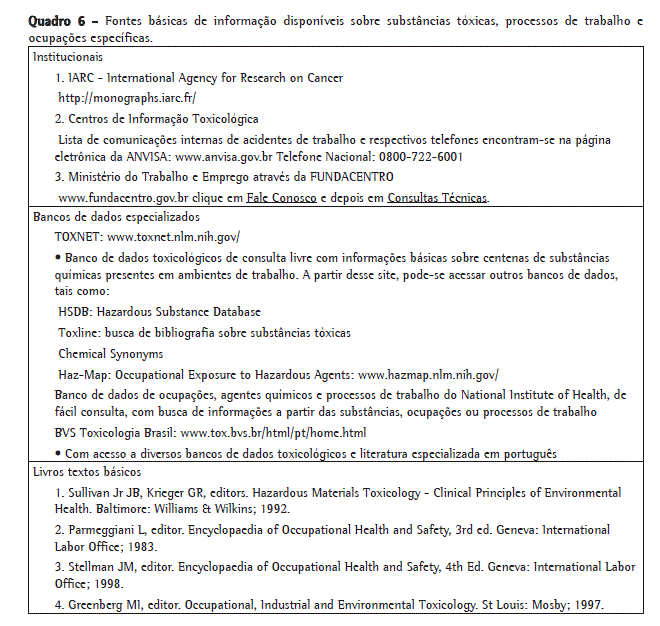 Algumas ocupações, entre elas soldador, moldador em fundição, rebarbador de peças, ferramenteiro, afiador de ferramentas, esmerilhador, marteleteiro pneumático, britador, esmaltador, são de difícil compreensão para o pneumologista que nunca presenciou essas atividades. A nomenclatura utilizada pelo paciente para denominar sua ocupação deve ser fielmente anotada, e não deve intimidar o médico na busca de explicações mais detalhadas sobre o que essa denominação significa na prática. Na ausência da visita ao ambiente de trabalho, outras fontes de informação deverão ser consultadas (Quadro 6).