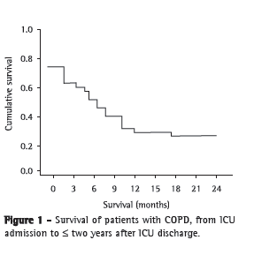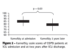 In conclusion, ICU mortality among the COPD patients evaluated in the present study was high, as was mortality in the first months after hospital discharge. In addition, the survivors remained self-sufficient two years after ICU discharge, although their functional capacity was significantly reduced, as demonstrated by the Karnofsky scale and ADL scale scores.