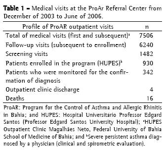 In contrast to what has been observed in other countries, such as Finland and Canada,(6,7) a nationwide asthma control program has not yet been established in Brazil. Isolated initiatives in some Brazilian cities and states have been offering assistance to patients of various ages suffering from asthma of various degrees of severity.(8) In 2003, the Programa de Controle da Asma e da Rinite Alérgica na Bahia (ProAR, Program for the Control of Asthma and Allergic Rhinitis in Bahia) was implemented. The main objective of the program is to coordinate measures for the prevention and treatment of bronchial asthma and allergic rhinitis within the Unified Health System in the state of Bahia, Brazil, guaranteeing regular access to medication, free of charge, and seeking to improve the quality of life of asthma patients by reducing the number of hospitalizations and emergency room visits, as well as the asthma-related mortality rate.(9)