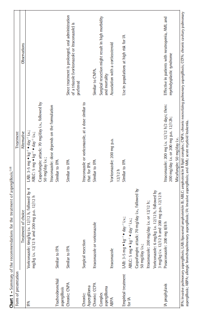 For patients who received previous treatment for IPA and who will be submitted to immunosuppression, the use of an antifungal agent prevents recurrent infection.(1)