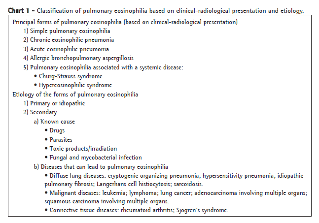 Keywords: Pulmonary eosinophilia; Hypereosinophilic syndrome; Aspergillosis, allergic bronchopulmonary; Churg-Strauss syndrome.