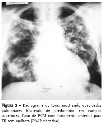 Como a apresentação clínica das duas doenças pode ser semelhante, observou-se que vários pacientes com diagnóstico definido de PCM fizeram tratamento prévio para TB, porém sem confirmação baciloscópica. Estes pacientes em geral não responderam a tratamento específico para TB e só melhoraram após a introdução da medicação para PCM.