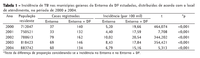 Avaliação da notificação no Distrito Federal de casos de tuberculose residentes em dez municípios goianos do Entorno e análise da incidência de tuberculose nestas localidades
