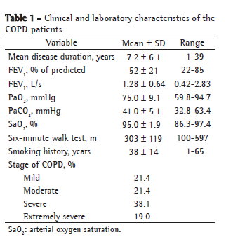 This high percentage of patients with severe or extremely severe disease in the sample studied can affect the extrapolation of the results to the general population of COPD patients. However, this does not invalidate the results, since this sample represents the profile of patients treated at a referral center.