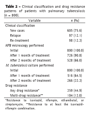 Palavras-chave: Radiography, thoracic; Bacteriology; Tuberculosis, pulmonary/drug therapy.