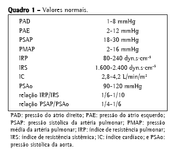 medir as pressões, a relação Qp/Qs, a resistência pulmonar (RP) e a sistêmica (RS), assim como a relação entre elas