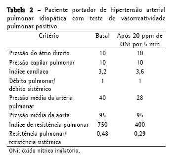 Nos casos de HAP idiopática (HAPI), a sobrevida após o início dos sintomas em um, três e cinco anos é de 68%, 48% e 34%, respectivamente.(3) Drogas antagonistas do cálcio têm ação vasodilatadora pulmonar conhecida, com diminuição da pressão pulmonar e aumento da sobrevida e qualidade de vida dos pacientes com HAPI.(4) Entretanto, menos de 20% desses pacientes, ou seja, aqueles com teste de vasorreatividade pulmonar (TVRP) positivo, deveriam usar essa medicação.(5) Para pacientes com TVRP negativo, o uso dos antagonistas de cálcio é desaconselhado, pela própria ausência de resposta à medicação e pelos riscos de complicações graves, inclusive óbito.