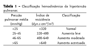 A HAP é classificada de acordo com os valores de pressão e resistência pulmonares (Tabela 1).