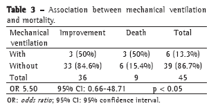Of the variables studied, only the need for mechanical ventilation correlated significantly with mortality, regardless of the study group (Table 3).