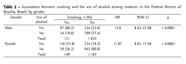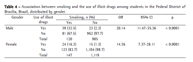 Prevalence of smoking and its association with the use of other drugs among students in the Federal District of Brasília, Brazil