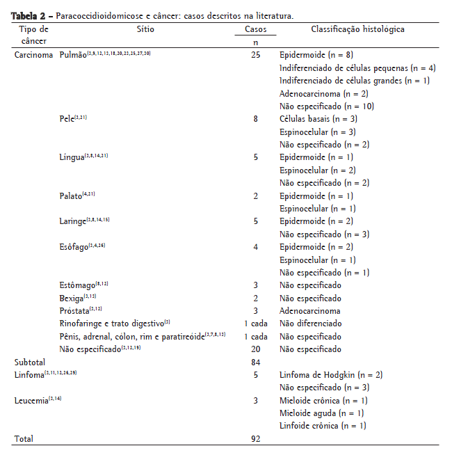 Keywords: Paracoccidioides; Paracoccidioidomycosis; Neoplasms.