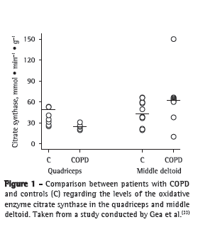 50. Jakobsson P, Jorfeldt L, Henriksson J. Metabolic enzyme activity in the quadriceps femoris muscle in patients with severe chronic obstructive pulmonary disease. Am J Respir Crit Care Med. 1995;151(2 Pt 1):374-7.