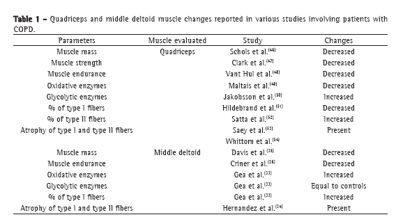 33. Gea JG, Pasto M, Carmona MA, Orozco-Levi M, Palomeque J, Broquetas J. Metabolic characteristics of the deltoid muscle in patients with chronic obstructive pulmonary disease. Eur Respir J. 2001;17(5):939-45.