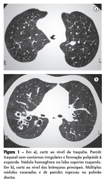 A enfermidade adquire grande importância por sua grave evolução e acometimento em crianças e adolescentes, apresentando morbidade com sérias complicações e expressiva piora da qualidade de vida, ocasionadas por muitas excisões cirúrgicas e traqueostomias necessárias, com prognóstico desfavorável, que inclui o óbito.(4) Embora na maioria dos casos o diagnóstico já tenha sido feito na infância, pelo encontro de papilomas nas vias aéreas superiores, eventualmente o diagnóstico pode ser inicialmente suspeitado pelo encontro de lesões polipóides na traquéia, associadas a nódulos pulmonares, vários deles escavados.