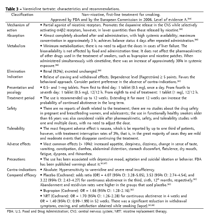 Drug therapyThe use of drugs is an additional resource in the treatment of smokers when the behavioral approach is not sufficient due to the presence of a high level of nicotine dependence. The drugs with efficacy evidence are classified as nicotinic or non-nicotinic.