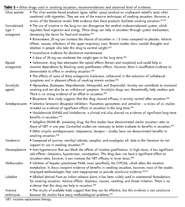 IntroductionThis update represents the strong commitment of the Brazilian Thoracic Association to smoking cessation. It provides health professionals with a comprehensive instrument to deal with the principal aspects of tobacco dependence. It includes new and effective clinical treatments and highlights changes in procedures in certain situations.