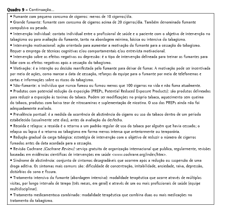 Estas diretrizes constituem uma ferramenta atualizada e abrangente para auxiliar o profissional de saúde na abordagem do tabagista, recomendando