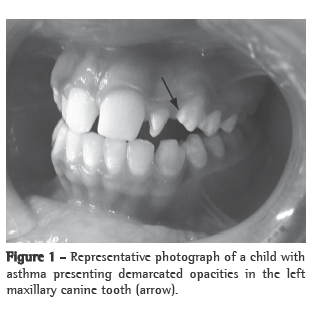 Some studies have reported that the prevalence of dental caries is higher and that salivary flow levels are lower in children with asthma than in those without asthma.(3-5) There have also been reports suggesting that respiratory disorders are associated with dental enamel defects.(6) However, such reports have presented no epidemiological data regarding its prevalence in children with asthma-nor have there been any studies investigating the potential role that pharmacological treatment plays in this association.